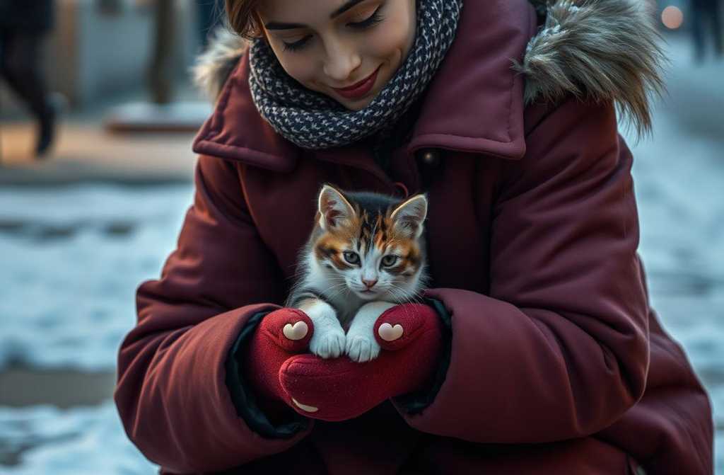 Elle serra le chaton contre elle, caressant son petit corps tremblant.