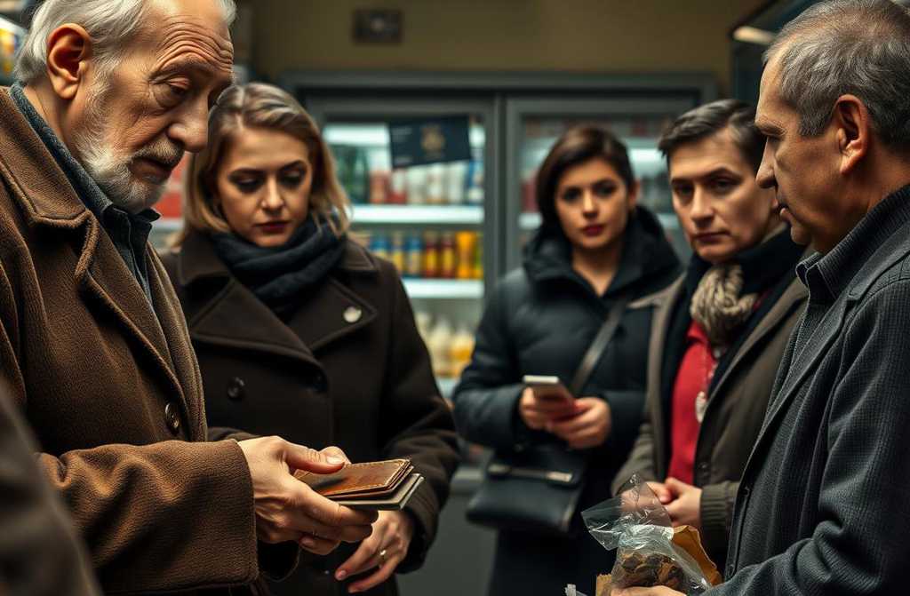 Sébastien, du coin de lœil, remarqua aussi lhomme pressé, costume cravate, dossier sous le bras, qui soupirait dagacement. *Toujours cette file* Ses doigts tremblants peinaient à ouvrir son vieux portefeuille, les pièces lui échappaient. La caissière grogna : *« Allez, vieux, on na pas toute la journée ! »*