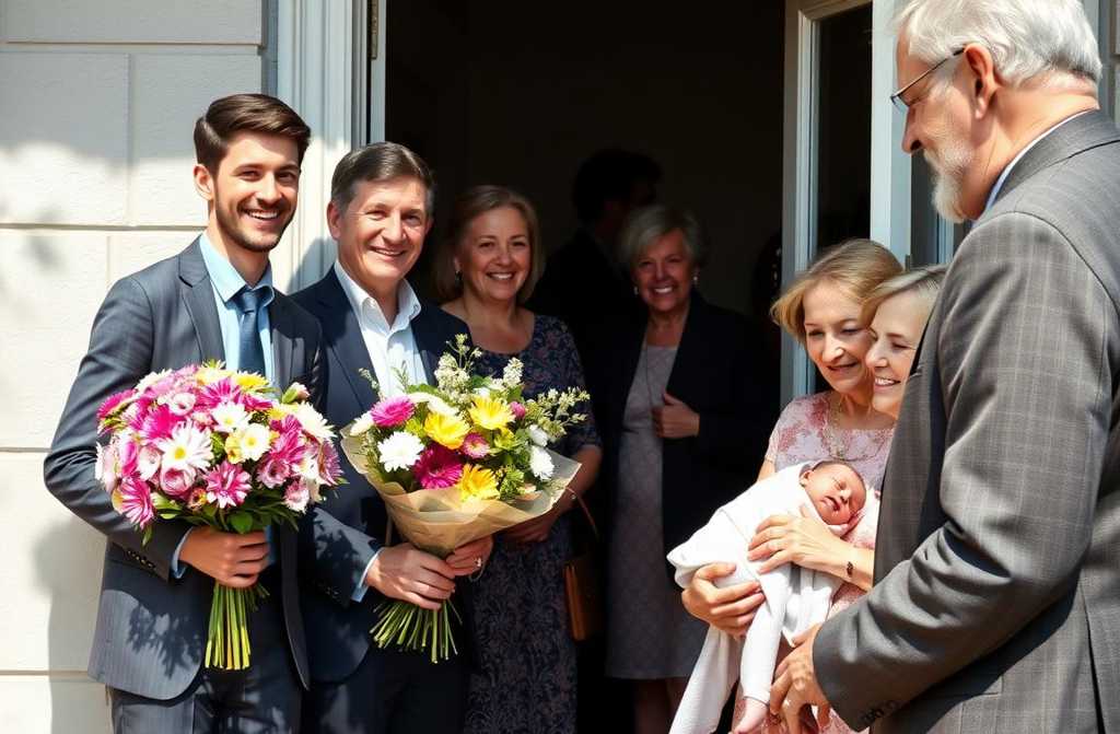 Quand vint le jour J, Arnaud attendit devant la maternité, un bouquet à la main, entouré de ses parents et amis. La mère dÉlodie était là aussi, les larmes aux yeux.