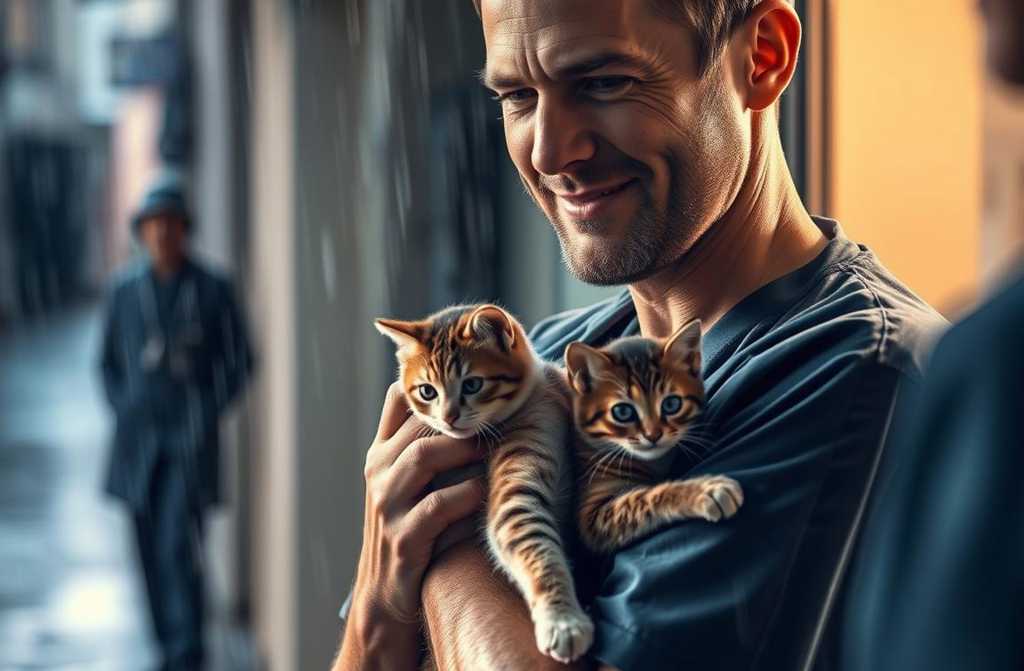Il prit délicatement le petit et le déposa près de sa mère. La chatte se calma aussitôt.