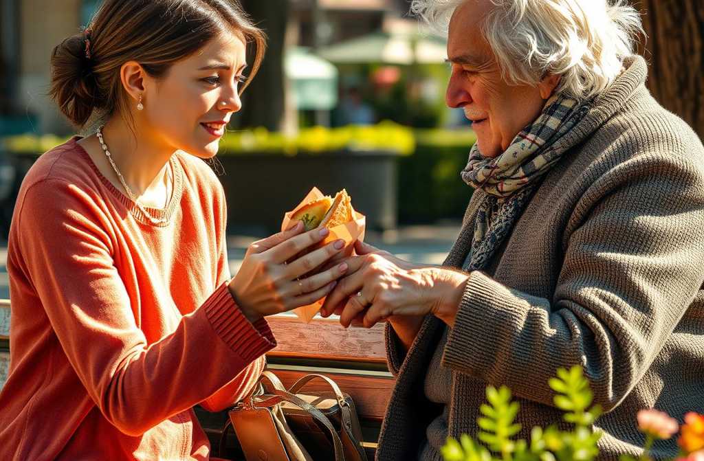 Je partage mon sandwich avec une vieille dame seule et le lendemain, elle frappe à ma porte.