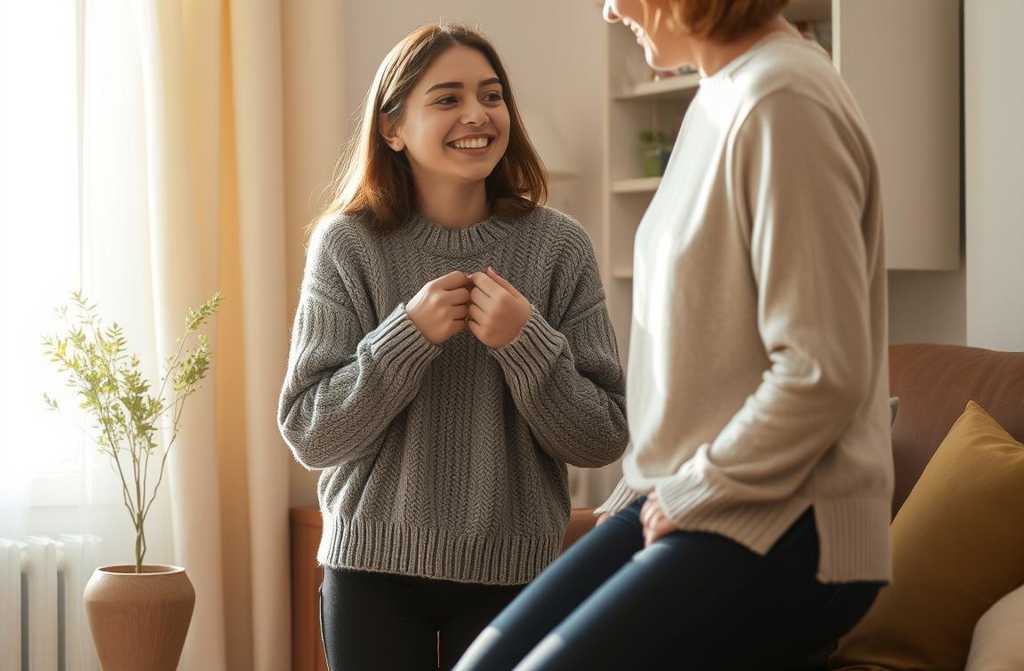 Maman, où est mon pull bleu ? Celui avec le col roulé ? cria Élodie depuis lentrée en faisant tinter les cintres.