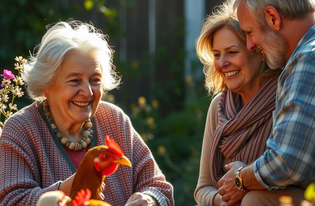 « Mamie, je moccuperai des poules. Et je vais récolter les légumes pendant que tu te prépares. Allez, dépêche-toi ! »