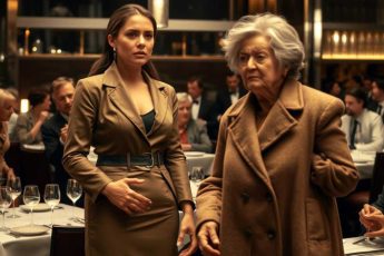 Une femme élégante, vêtue dun manteau luxueux, le regard lourd et la posture retenue, pénétra dans le