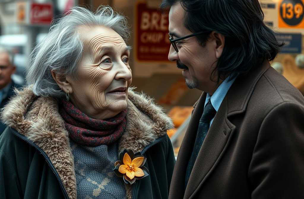 Lhomme, indifférent, commanda sans vraiment écouter. Son regard se posa sur la vieille femme, et quelque chose le frappa une broche en forme de fleur, accrochée à son manteau miteux. Une lueur de reconnaissance traversa son esprit, mais il partit sans comprendre.