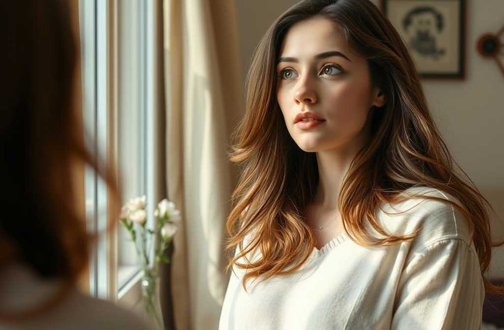 Elle contemplait son reflet dans le miroir grande, élancée, avec de longs cheveux châtains et de grands yeux et sadmirait sans retenue.