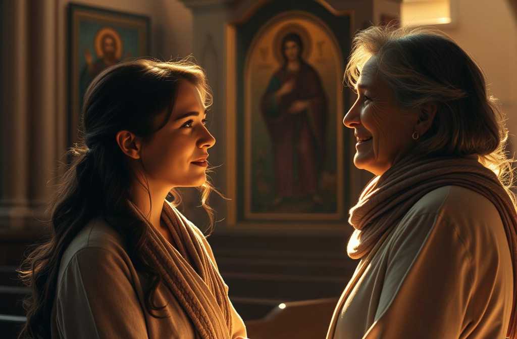 Une messe était en cours, mais il ny avait pas beaucoup de monde. Elle avança et regarda autour delle, cétait sa première fois dans une église. Son regard se posa sur une grande icône représentant une jeune femme tenant tendrement un enfant dans ses bras. Élodie ne pouvait en détacher les yeux. Au bout dun moment, une vieille femme, un foulard sur la tête, lui murmura doucement :