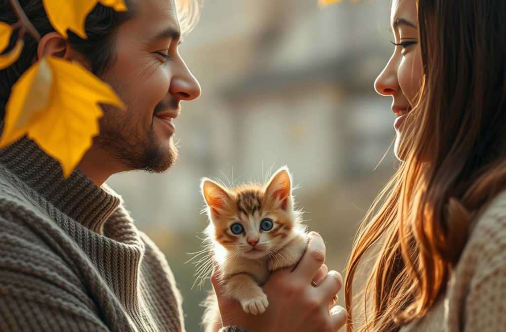 Quand nos familles nous voient rire, elles sourient. Le chaton nous observe, intrigué.