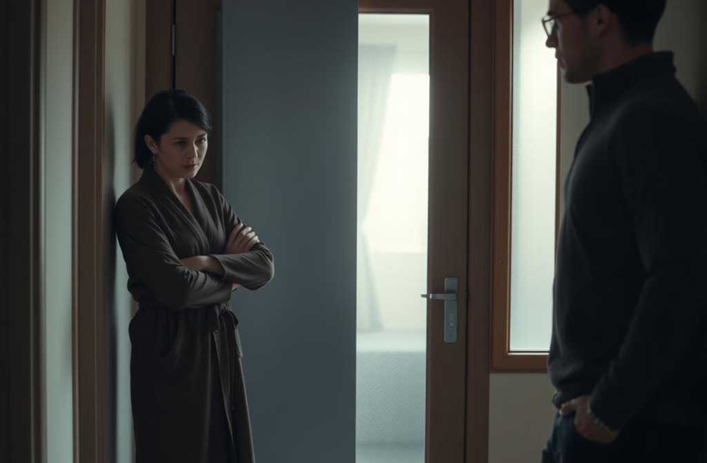 Ça suffit ! Soit tu sors maintenant, tu expliques à ta mère ce quest un invité et tu la renvoies chez elle, soit on se sépare !