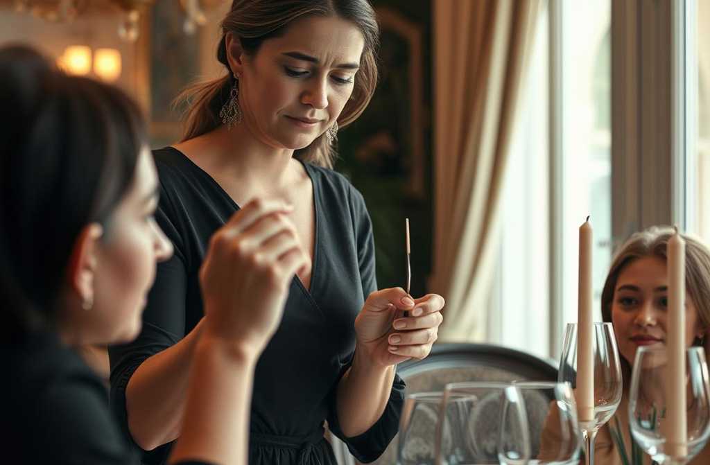 Anne resta figée, sa fourchette en suspens, transformée en statue de honte et dincrédulité. Le morceau de jambon, soigneusement pincé entre les dents de la fourchette, ne parvint jamais à son assiette en cristal, bloqué à mi-chemin. Elle, si fragile, comme tissée de fils dautomne, assise face à son mari, sentit des dizaines de regards se tourner vers elle piquants, compatissants, perplexes. Son propre corps lui parut soudain étranger, lourd, son cœur remonta dans sa gorge, étouffant sa respiration.