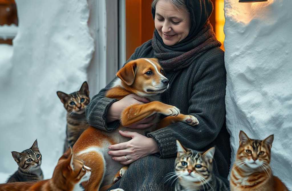 Odette, ne restez pas dans le froid, venez à lintérieur. Je finis bientôt, et je ne dirais pas non à un thé. Odette sourit, touchée par ce geste inattendu. Elle rentre préparer le thé tandis que Vladimir travaille en sifflotant, entouré des bêtes qui déjà ladoptent. Le soleil perce à travers les nuages, allongeant des ombres dorées sur la neige fraîche. Quand la porte est enfin redressée, solide et droite, Odette tend une tasse fumante à Vladimir. Ils restent un moment silencieux, assis à la table de la cuisine, entourés de chats et de chiens endormis. Depuis longtemps, la maison navait pas connu un tel calme, ni une telle chaleur.