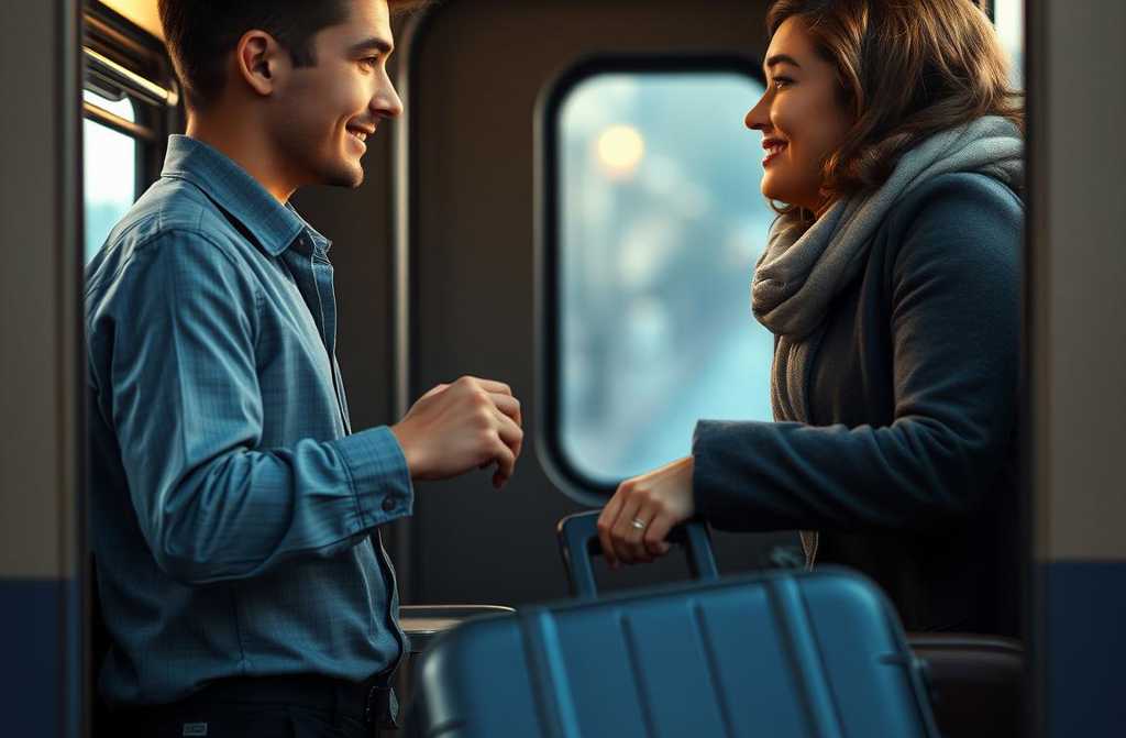 De quoi parlentils? De rien, et de tout à la fois. Comme toujours à bord dun train, ils commencent par la météo, passent aux prix des billets, «Et vous, comment ça va?», puis, naturellement, à la vie. Voilà ce jeune couple.