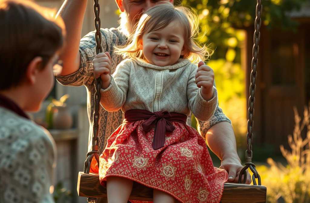 Manon, désormais élève, sassit un jour sur le perron et observa Hugo travailler. Plus tard, elle alla jouer chez la voisine et, en rentrant au crépuscule, découvrit le portail grand ouvert. Au centre de la cour se dressaient des balançoires! Elles se balançaient légèrement sous le souffle du vent, comme pour lappeler.