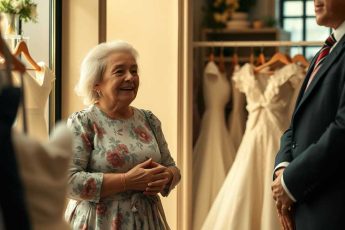 Une vieille dame entra dans une boutique de robes de mariée haut de gamme. Le vendeur se moqua delle
