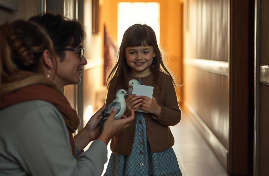 «Donnemoi la lettre,» ditelle, mais le pigeon, débordant dénergie, senvola à nouveau, percutant Manon qui poussa un cri. Le bruit fit sortir les voisins, rires et disputes se mêlant dans le couloir.