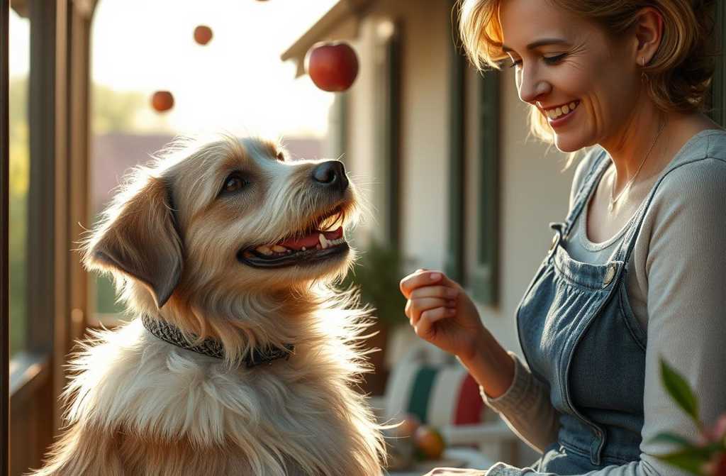 Dehors, une brise légère fait danser les branches du pommier, et de grosses pommes rouges et mûres tombent doucement dans lherbe.