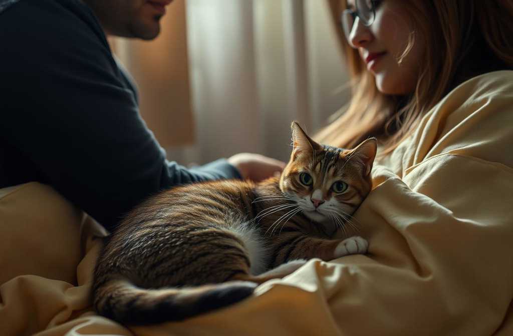 Au réveil, une lourdeur lui pesait sur les jambes. Elle ouvrit les yeux : le chat y était installé.