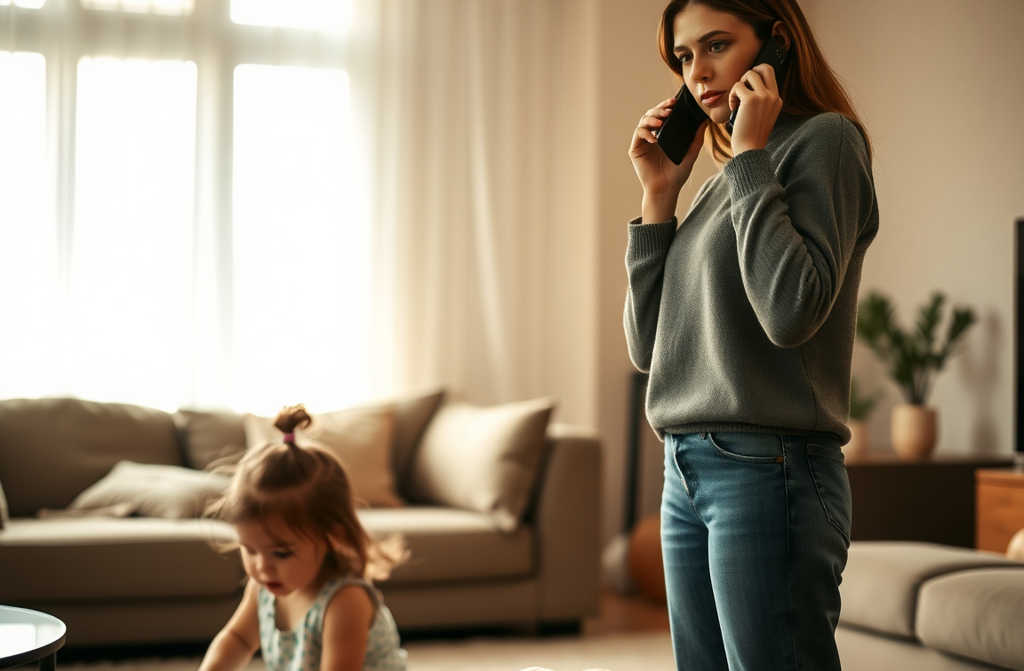 Maman, qui tu appelais? surgit Manon du berceau, serrant un vieux lapin en peluche.