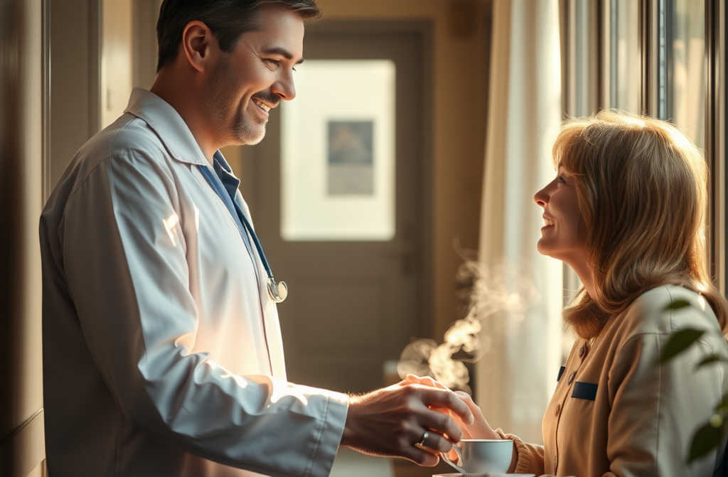 Les jours à lhôpital sécoulaient lentement. Nos regards se croisaient sans cesse dans les couloirs. À chaque fois que je le voyais, une joie enfantine me submergeait. Le docteur venait parfois rendre visite à ma tante, toujours poli et professionnel, mais son regard sattardait toujours un instant de trop sur moi.