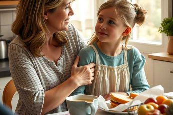 Bonjour, ma petite endormie! sécrietelle. Lomelette est prête, viens.