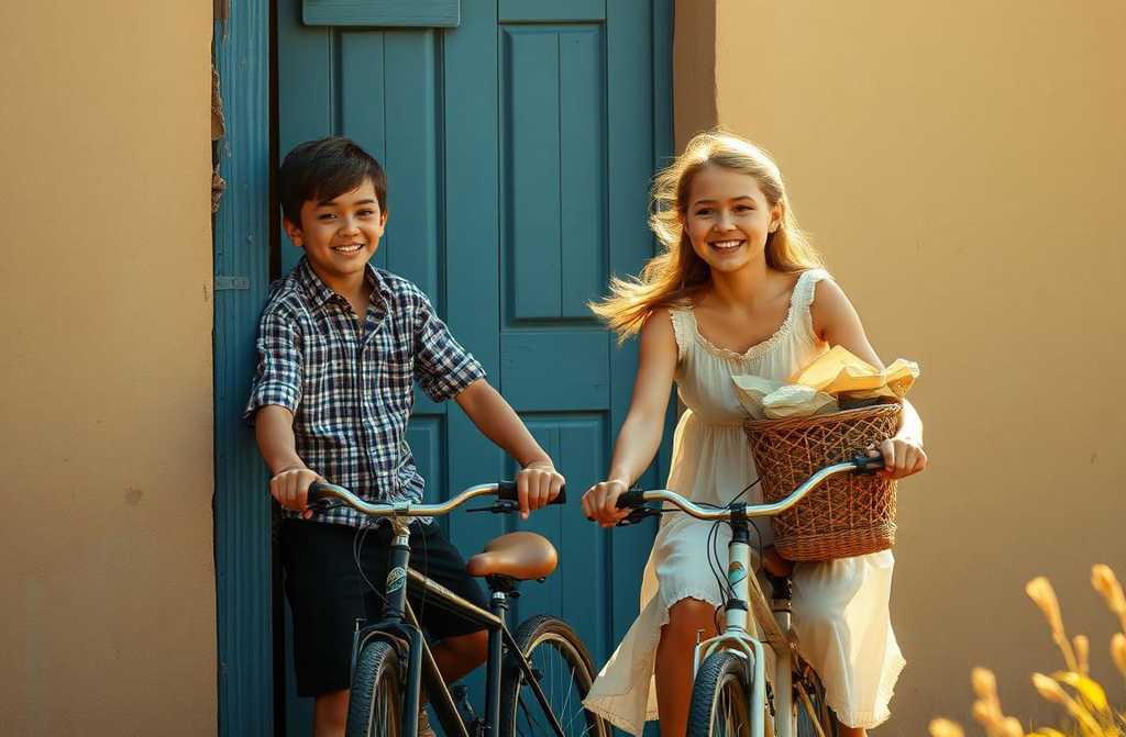 Le garçon pédale avec énergie, et bientôt, ils quittent les limites du village, filant sur un chemin de campagne.