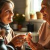 Mélanie pose une assiette domelette sur la table et sassoit en face de Lucas. Le soleil filtre à travers les rideaux en lin, teintant la pièce dune douce lumière dorée. Elle appuie son menton sur sa main et sourit.