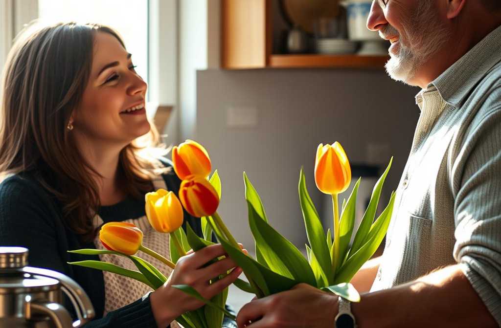 Да, всё в машине. А это для вас, достал из пакета небольший букет тюльпанов и протянул.