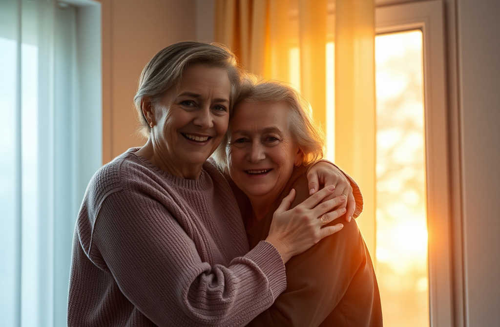 Alice Ophélie sassied au bord du lit, touche timidement la main de son père. Jean, les larmes de joie, caresse son visage.