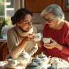 Тётя Марфа подняла взгляд. На её лице появилось слабое, но доброе улыбка. Девочка протянула крошечную ладонь, пытаясь помочь ей встать.