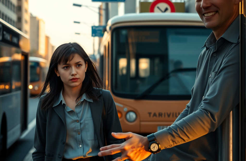 Через полгода он признаётся ей в любви не в кафе, не в парке, а на той самой остановке, где они впервые встретились.
