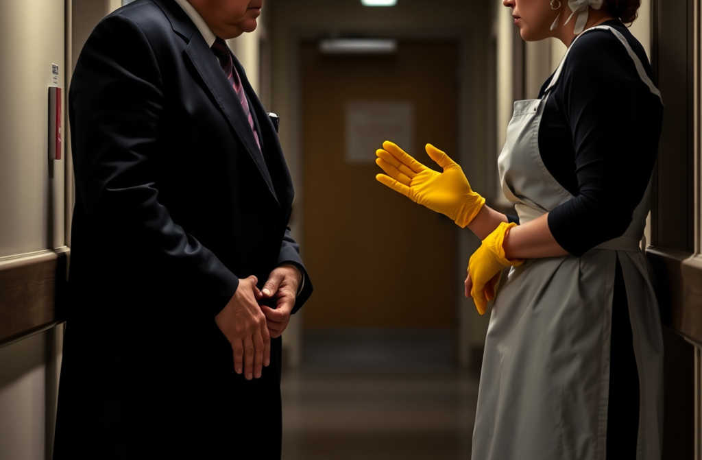 Тем временем Виктор Петров получил известие о несанкционированном уходе его «Феррари» с территории. Прибежав в больницу, он был в ярости и уже собирался вызвать полицию. Но то, что увидел, изменило всё. Виктор вбежал в вестибюль в роскошном костюме, голос его грозил громом: «Где она? Моя домработница украла мой «Феррари»!». Прежде чем администратор успел чтолибо сказать, взгляд Петрова упал на Жанну, сидевшую в углу, её перчатки всё ещё надеты, а лицо покрыто слезами. «Ты!», прошипел он, подходя.
