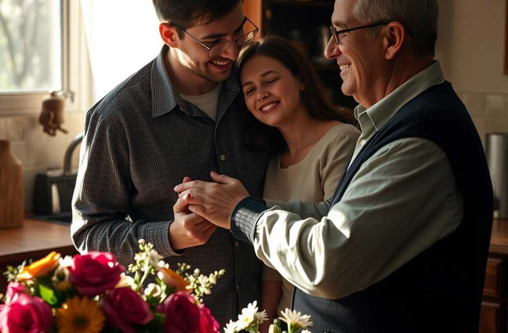 Все вместе пришли к родителям Сергея. Мама обрадовалась до слёз, обнимала всех, смеясь сквозь рыдания. За обедом говорили о работе, планах, свадьбе. Василиса рассказывала о своём магазине, мать задавала вопросы. Отец молчал больше, но когда говорил, обращался к ней с уважением.