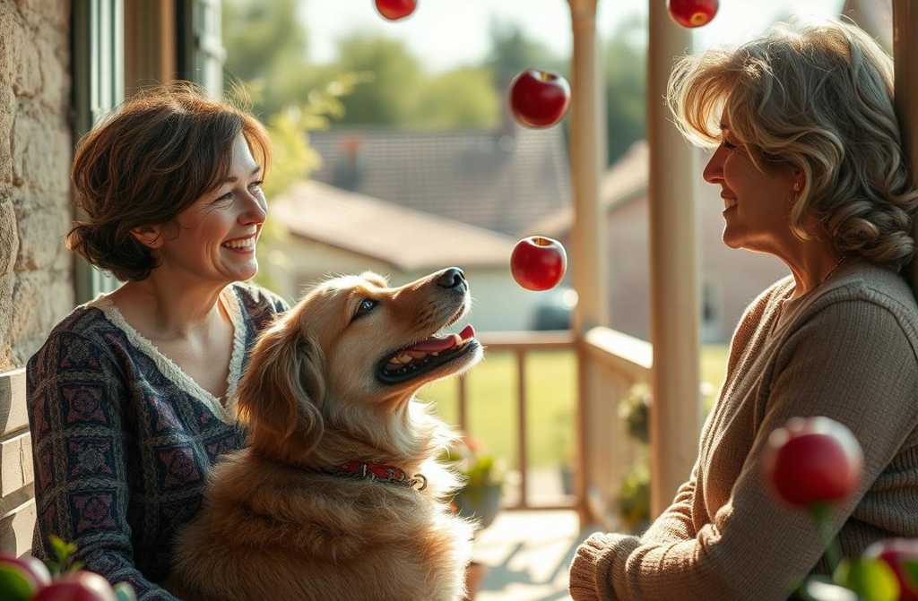 «Лапка, иди встречать гостя!» воскликнула старушка. Щенок подпрыгнул, радостно виляя хвостом, и бросился ко мне. Его шерсть теперь блестела на солнце, волнистая и здоровая.
