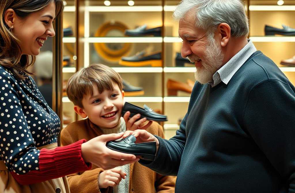 Les yeux du garçon se sont élargis devant la vitrine remplie de cuir poli. «Papi, regarde!Ça brille!»