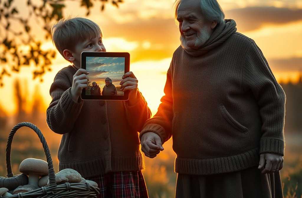 Смотри! сказал он, показывая экран, где я увидел себя с полной корзиной. Я чуть не упал со стула от удивления. Юра быстро провёл пальцем по фотографии, и вместо грибов на экране появился Лёха.