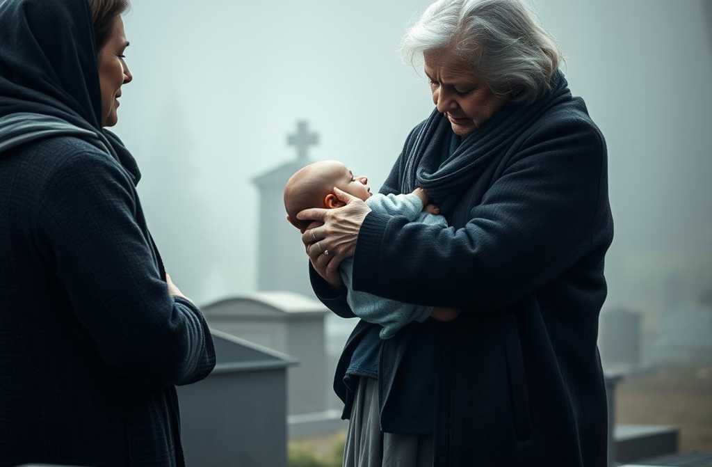 На похоронах моего мужа я замечаю странную пожилую женщину, держащую на руках крошечного младенца. Дивно, не правда ли?