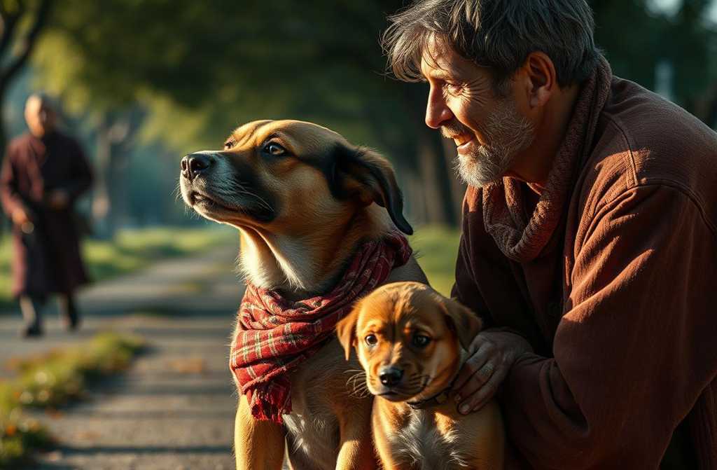 Il arrivait au petit bois, là où, parmi les buissons, vivaient ses «protégés»trois chiens errants, repoussés mais non abattus. Ils lattendaient chaque jour, comme sils connaissaient lheure. Ils surgissaient des arbres, plissant les yeux sous le soleil, agitant leurs queues maigres, comme pour dire: «Nous sommes là. Nous tenons. Grâce à toi.»