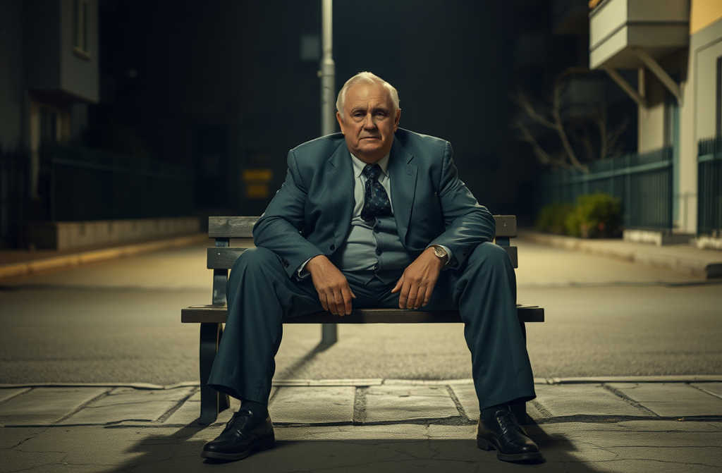 Поздно ночью, возвращаясь домой, я заметил Вадима на скамейке перед подъездом, под тусклым фонарём. Он сидел, согнувшись, уже пьян, глаза мутные, руки на коленях. Не узнал меня.