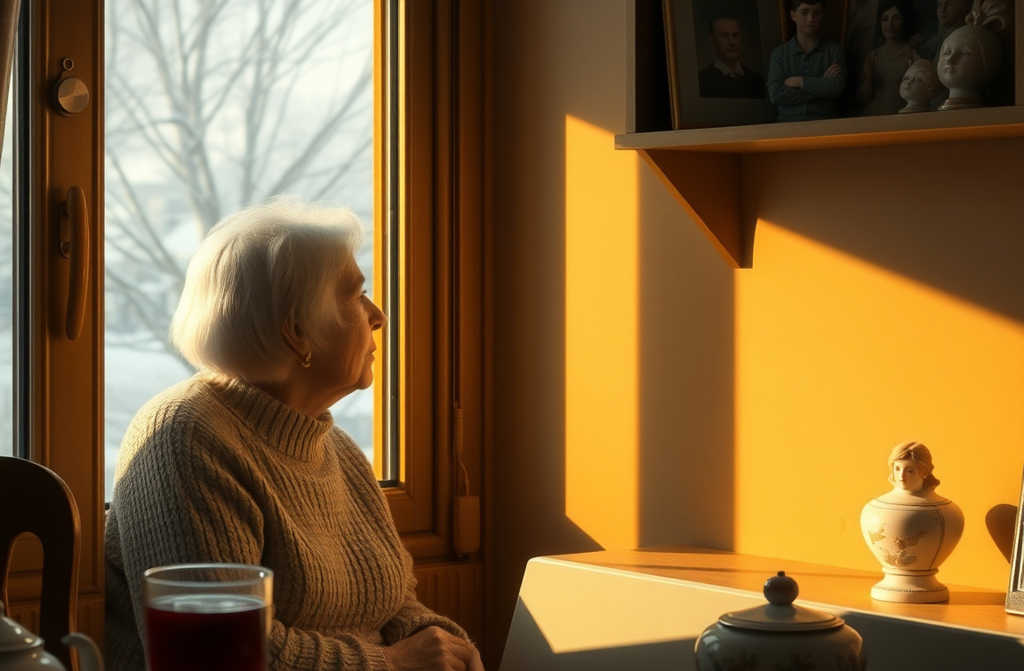 Бабушке Маше Ивановне приснился тревожный сон, будто покойная мама угощала её пирогами и говорила: «Кушай, доченька». Маша ест, но насытиться не может. Утром просыпается, сердце сжимает страх: если умершие родственники кормят во сне, значит, им осталось недолго. Включает ноутбук, ищет нужную тему, читает: буддийский монах из Тибета тоже предсказывает, что осталось не более двух недель. Уйти не хочется мир Божий прекрасен, даже в преклонном возрасте, здесь ещё успеть всё увидеть, здесь бы пожить. Голова давит от тоски, жизнь пролетела слишком быстро. Решает быть смелой, принять неизбежное, рвёт старые фотографии в клочья их всё равно выбросят, никто не нуждается в чужих свидетельствах. Солнце светит, может, выйти? Хочется успокоить внутреннюю боль. Одевается, выходит на площадку и слышит плач ребёнка из соседней квартиры. Стены слышат каждый звук. Что происходит? За дверью живёт молодая пара в съёмном жилье. У них дочь четырёхлетняя Людмила, и беременная женщина, вторая ребёнка ждёт. Девочка плачет безутешно, кажется, случилось чтото тяжёлое. Машу открывает мужчина, лицо бледное, как будто только из гроба вышел. Он, запинаясь, рассказывает: «Роды начались, жену увезли в больницу. Она чуть не умерла, когда рожала Людмилу, и сказала, что сейчас не выживет. Я проводил её до машины, и она попрощалась со мной». Сразу же слёзы наворачиваются. Приходят к Маше в квартиру, сразу в кухню. Сначала успокаивают девочку, и бабушка наливает ей в стеклянный стакан ягодный морс: «Видишь, на стакане нарисованы ягодки? Они плавают в напитке, это хороший знак. Пей, пожалуйста». Почему это хорошо, она не объясняет. Людмила успокаивается, оглядывается, всё незнакомо. Её отец Сергей тоже стоит в кухне, садится на стул и замирает. Маша берёт дочь за руку: «Пойдем, покажу, как я живу». Выходят осматривать комнату. Сергей встаёт и идёт за ними. Бабушка указывает на портрет на стене: «Это мой дед, он был военным, сражался на фронте». Людмила изучает изображение незнакомого мужчины, а Сергей смотрит с любопытством. Затем останавливаются у полки, полной фарфоровых фигурок: белочка, зайчик, лебедь и несколько птиц. Людмила разглядывает их, передаёт папе. Он крутит фигурку в руках и кладёт обратно. Девочка выбирает белочку. Отец ещё раз её рассматривает: «Красивая. Позже будешь играть». Экскурсия заканчивается, хозяйка предлагает поесть. Трое возвращаются к столу. Сергей и Людмила садятся, а потом папа вспоминает, что чашки не помыты. Бабушка разогревает куриный суп. Гости понимают, что голодают. У Сергея не хватает, бабушка замечает и добавляет. Солнце клонится к закату, и Сергею не хочется идти домой там тревожно, а у соседки, как у бабушки, уютно. Он замечает медленно стекающую воду в ванной и говорит: «У вас в ванной плохо стекает, скорее всего засор». Приносит из дома инструменты и начинает чинить. Заканчивает в ванной, идёт на кухню для профилактики, долго возится, держит телефон рядом. На улице темнеет, Людмила клюёт носом, бабушка напоит её тёплым молоком и укладывает спать на свой диван. Сергей тихо сидит на кухне. Девочка засыпает, и Сергей просит у Маши: «Можно я переночую у вас на кухне?» Бабушка, понимая, что ему тяжело в своей квартире, соглашается, быстро достаёт раскладушку. Долго сидят, шепотом разговаривают. Сергей рассказывает, какая у него хорошая жена и как он её лю
