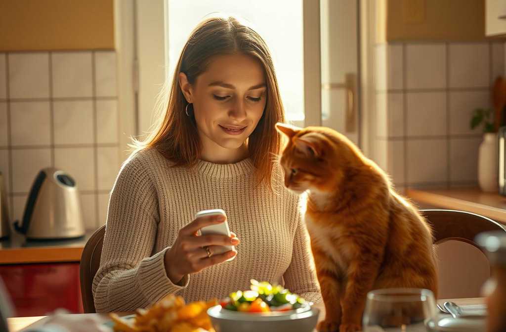 Elle ouvre la porte, le chat la regarde dun œil narquois et miaule.