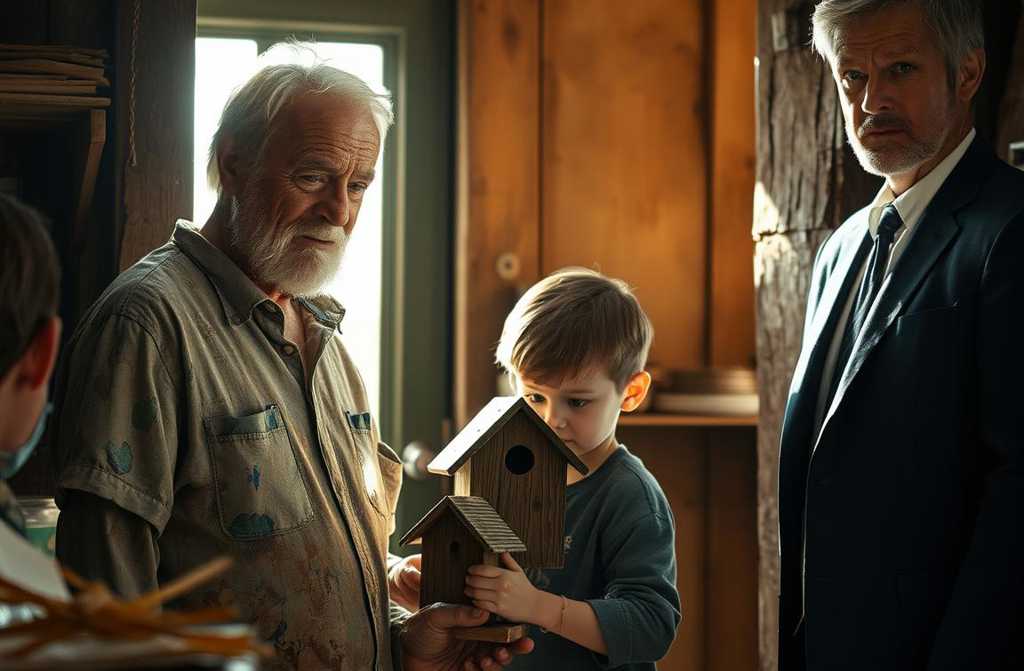 Il a trouvé son père dans un atelier décrépit, vêtu dun pantalon de travail taché de peinture, aidant deux gamins à scier des nichoirs avec une scie sauteuse. Aucun tableau de bord, aucun KPI, seulement la démonstration de comment tenir loutil sans se blesser, ponctuée de rires face aux blagues naïves des enfants. Sur la table, un vieux bouillonier émaillé et des sandwichs posés sur un journal ordinaire.