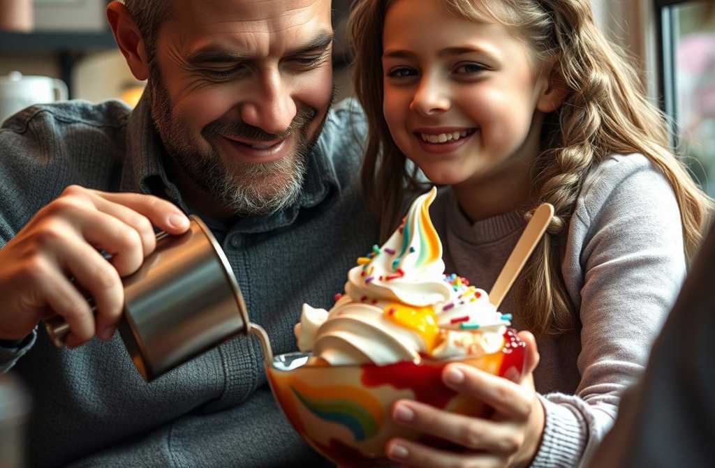 Sa fille na même pas touché son cornet de glace, même si devant elle se trouvait un vrai petit chefdœuvre: des billes colorées recouvertes dune feuille de menthe et dune cerise, le tout nappé de chocolat.