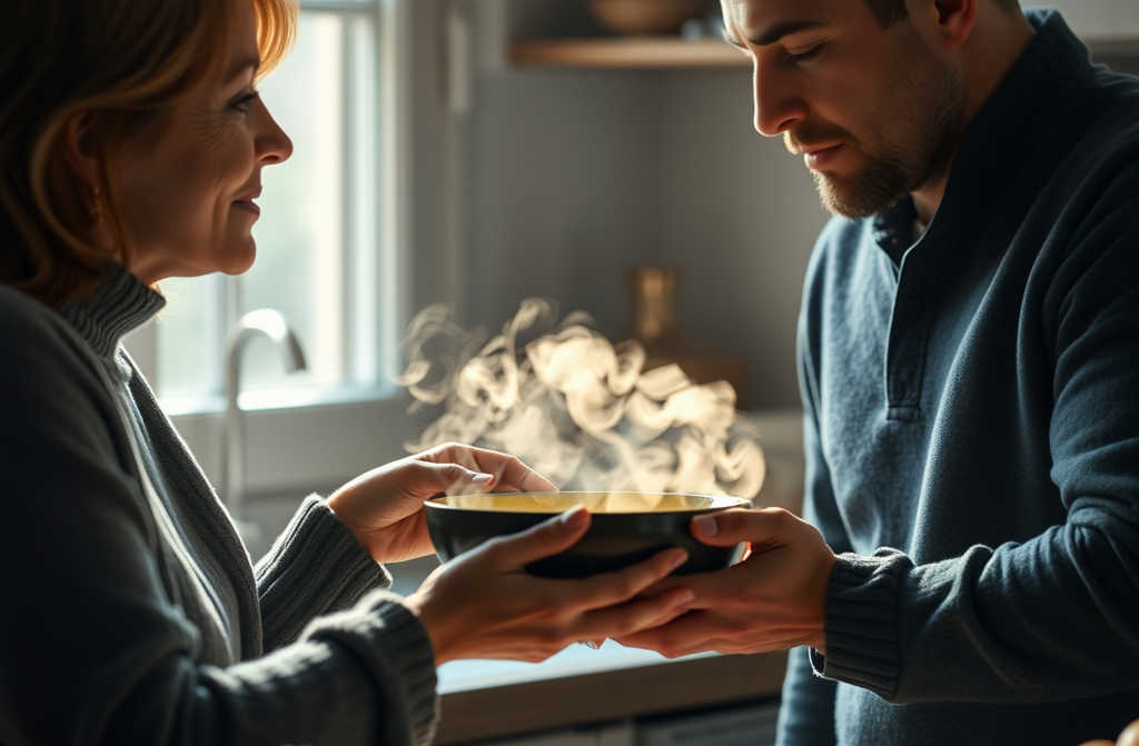 Je ne lai pas criée. Je suis allé chercher les assiettes, jai posé la soupe sur la table, parce que la soupe ne porte aucune culpabilité. Nous avons mangé dans le silence, seulement le cliquetis des cuillères sur la porcelaine et mon souffle irrégulier. Après un moment, jai repoussé mon bol.