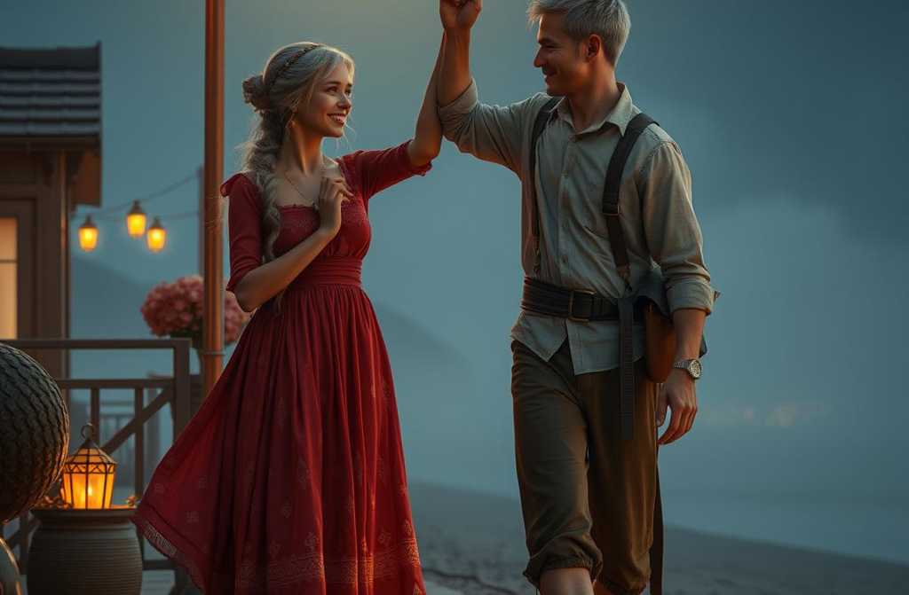 À la fin de la soirée, nous montons sur le toitterrasse. Au-dessus de la mer, une légère brume flotte, les lanternes éclairent la nuit dune douce lueur dorée. Tu te souviens du pari que je tai fait, celui de danser ensemble à soixante ans? lancetil soudainement. Je reste figée. Javais oublié ce pacte amusant fait il y a des décennies, qui semblait alors lointain, presque irréel. Et voilà souritil que je tiens ma promesse.