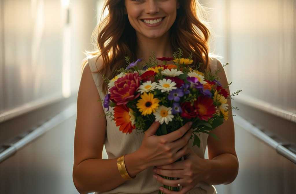 En revenant, les bras chargés de fleurs, elle pousse un cri de surprise quand, dans le hall, surgit Maxime derrière les boîtes aux lettres.