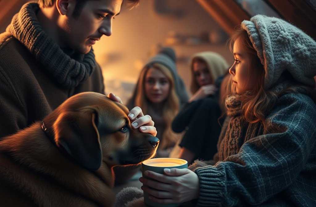 Dans lappartement sous les toits, Daniel allume pour la première fois depuis des années toutes les lumières. Rufus sendort immédiatement dans le panier que le concierge lui a apporté. Amélie, enveloppée dans une couverture douce, tient une tasse de chocolat chaud.