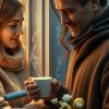 Ils partent. Elle le prend par le bras comme si elle le guidait à travers la vie. Il marche à ses côtés, son cœur porte un amour calme et solide. Devant eux, leurs enfants courent en riant, deux sources de bruit, de désordre et de joie infinie. Derrière ce petit convoi de bonheur, un ange gardien invisible bat des ailes, repoussant les malheurs dun souffle doux.