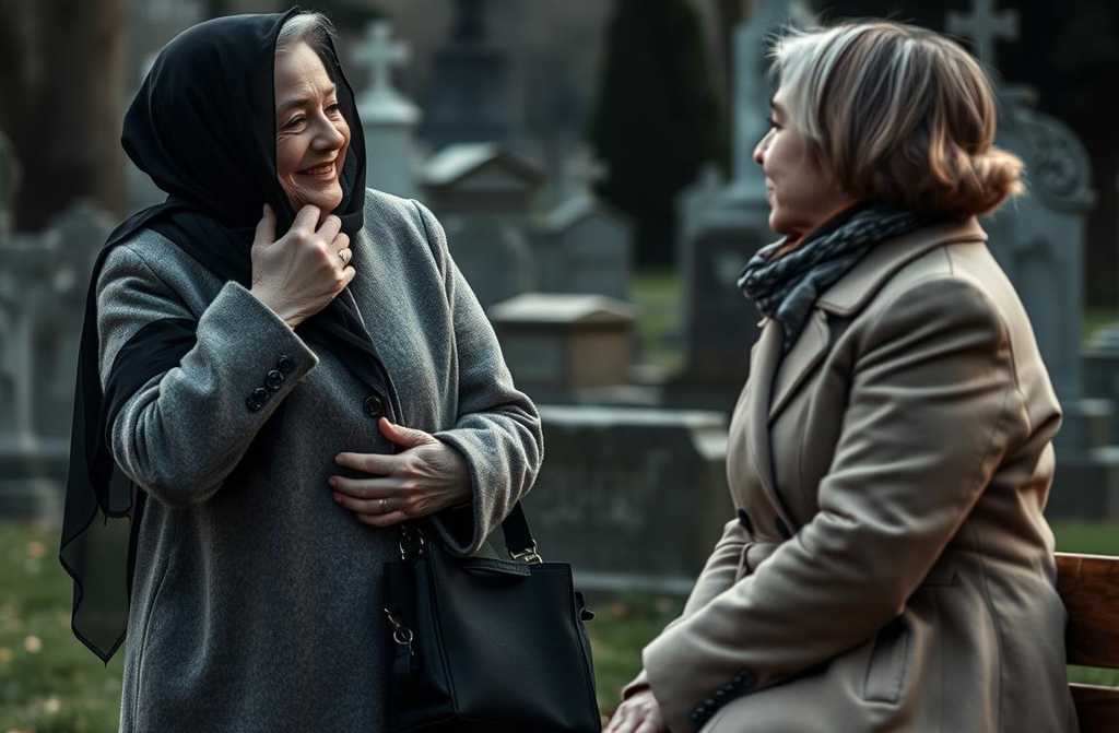 Так ведь, женщина машет в сторону могилы, где убиралась собеседница, это же он