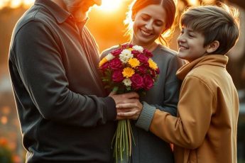 Однажды Тихон приходит к ней в выходной с букетом красных роз.