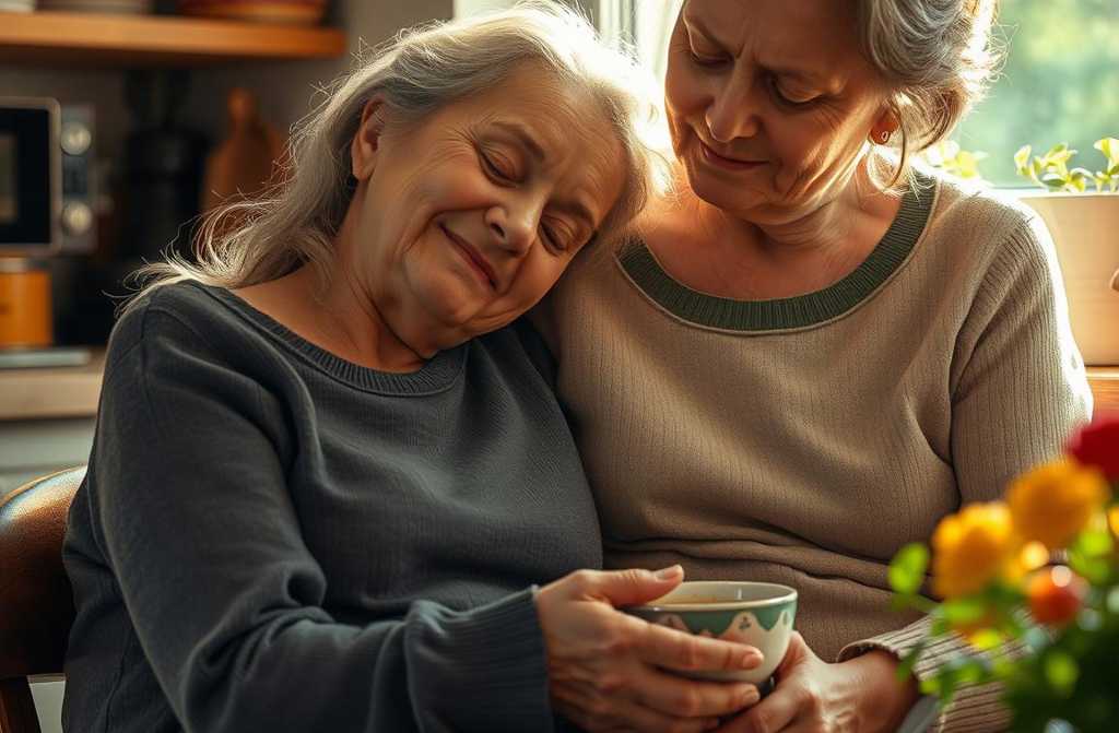 À présent, on ne peut plus parler à maman, lui demander un avis, sasseoir à ses pieds, se plaindre du patron ou de la fatigue. Maman devient comme un enfant, lente et naïve.